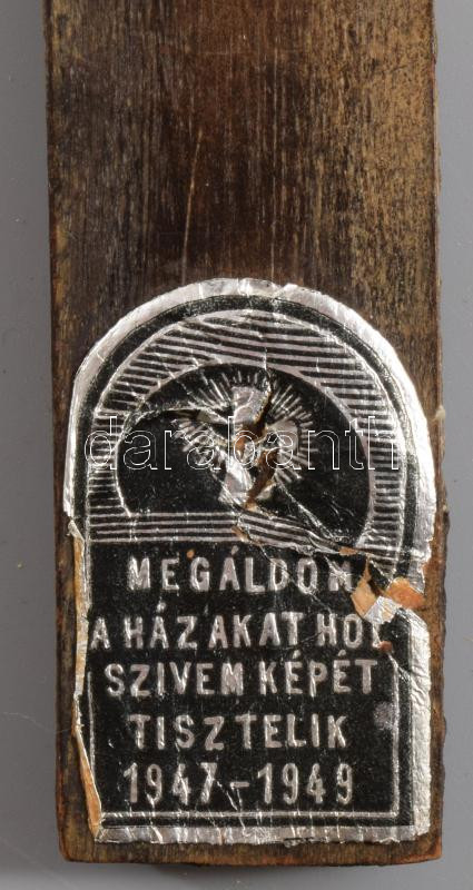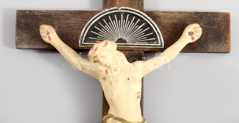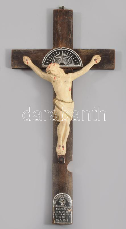 1949 Fali kereszt, sötétben foszforeszkáló korpusszal, jelzett, 33x16 cm