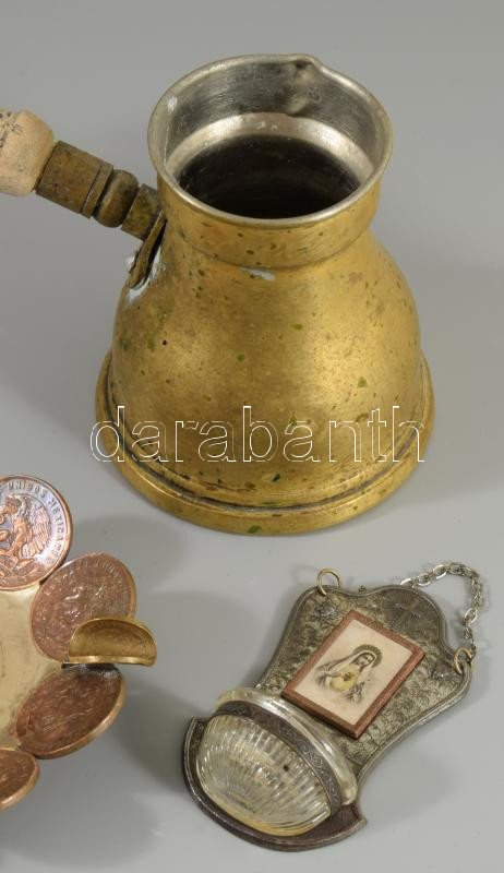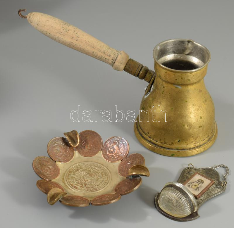 3 db fém tágy: kávé kiöntő, érte hamus, szenteltvíz tartó
