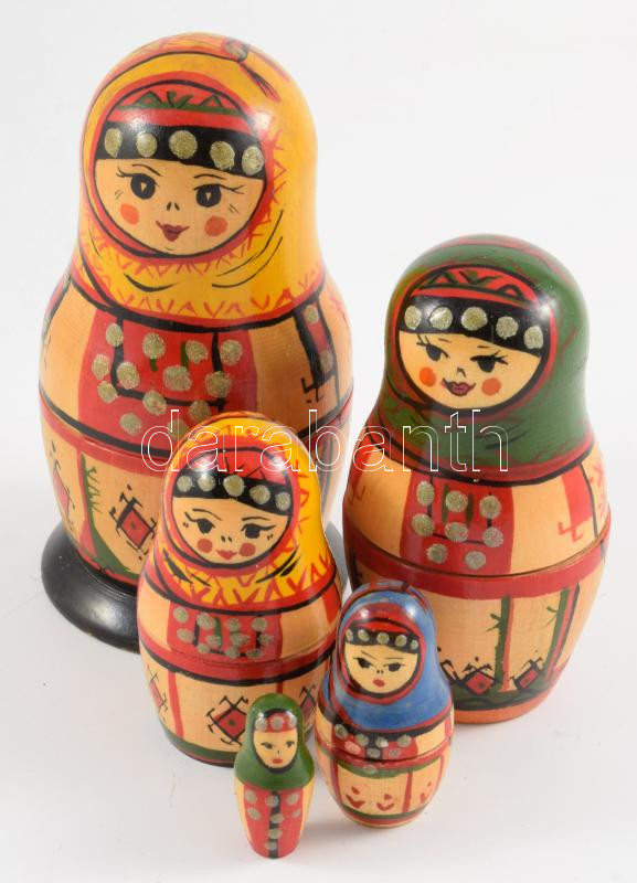 5 darabos matrjoska baba, kézzel festett fa. 11 cm ig