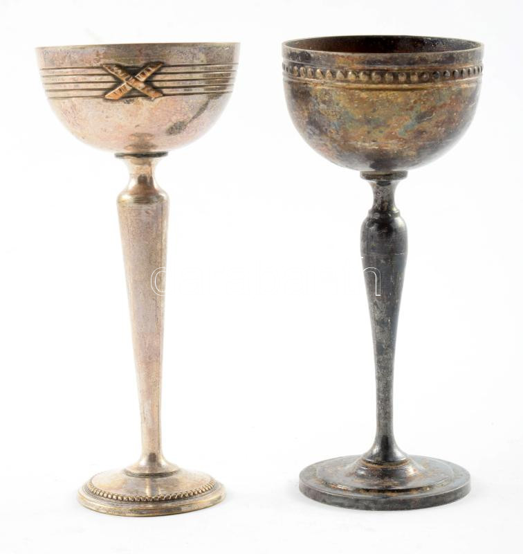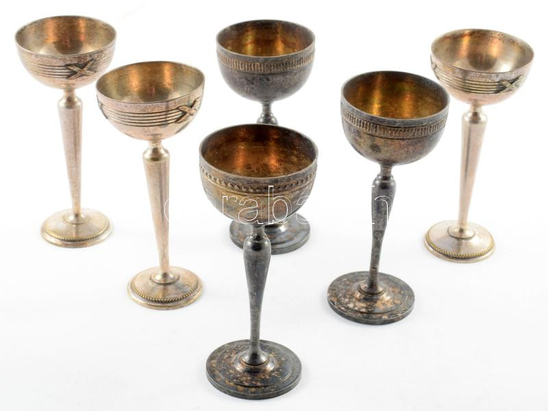 6 darab ezüstözött pálinkás pohár, m: 9,5 cm