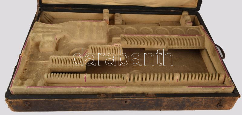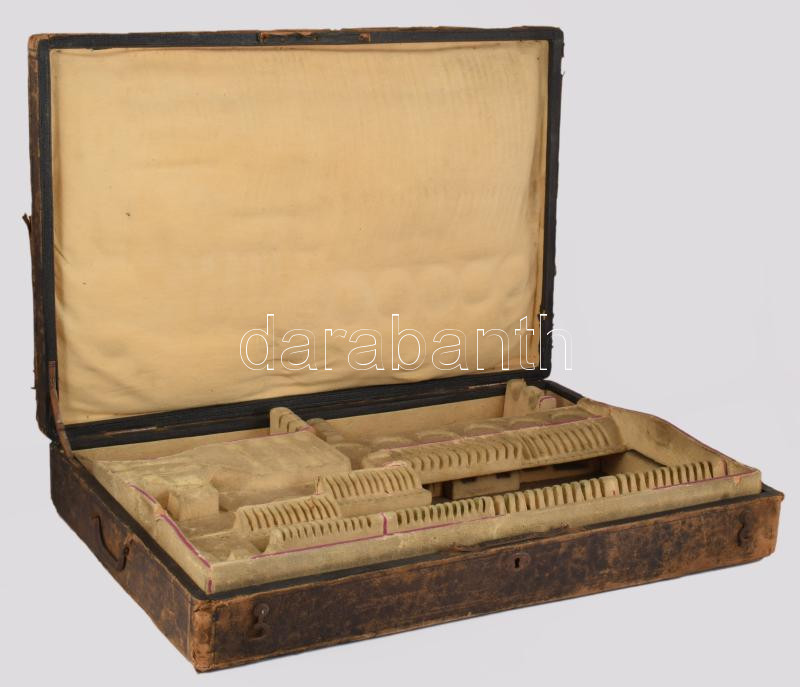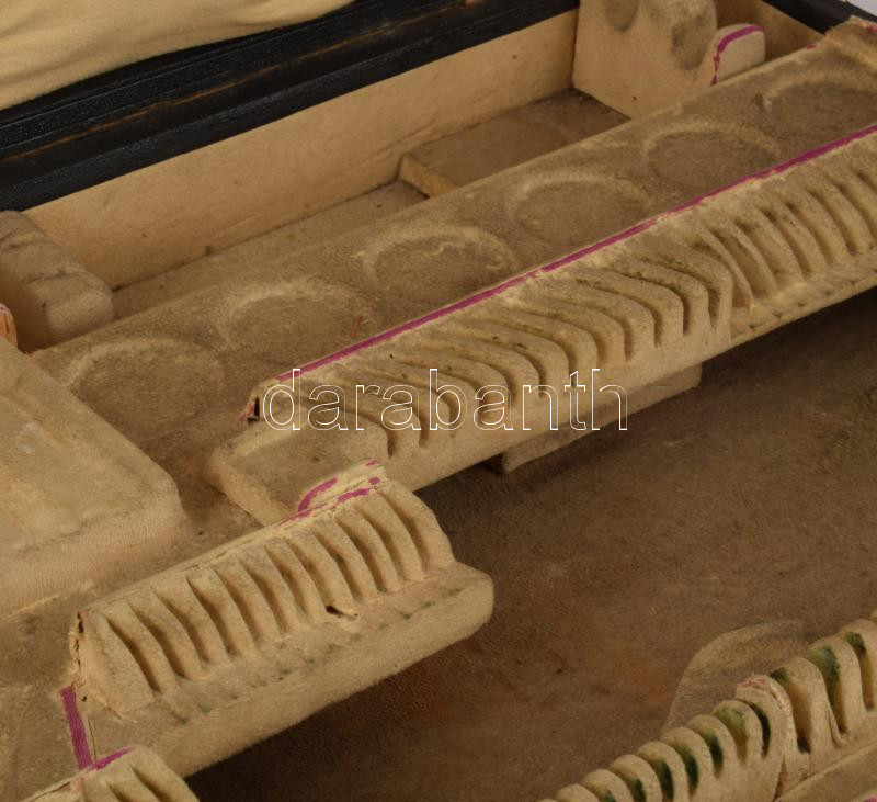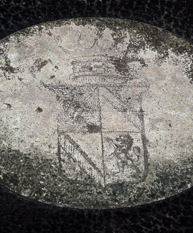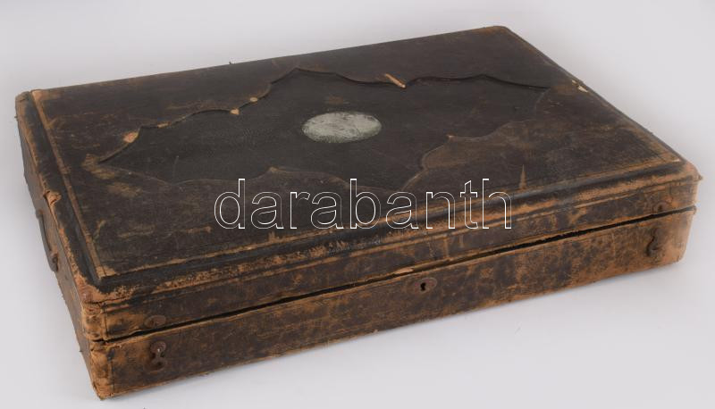 A Perczel család címerével díszített evőeszköz tároló doboz, cca 19. sz. közepe, második harmada, kopott, 40x60 cm