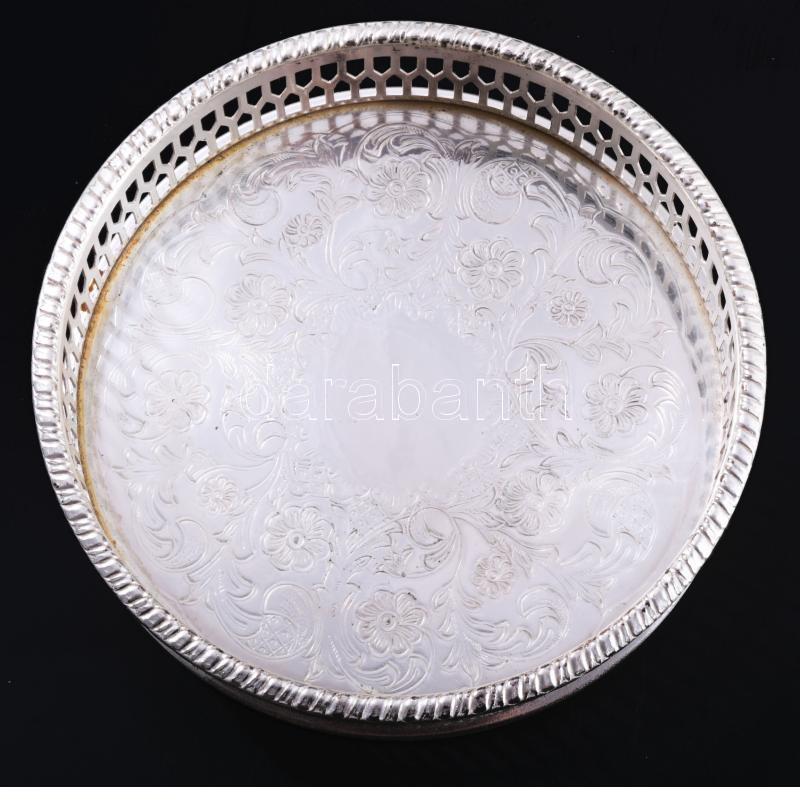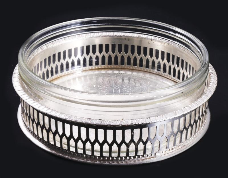 Alpha Plate Sheffield ezüstözött üvegbetétes kínáló, jelzett, d: 13 cm