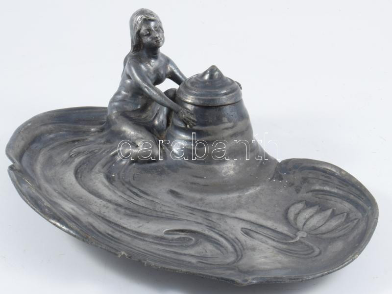Imperial jelzéssel szecessziós nő figurás tintatartó, sérült, 21x15 cm