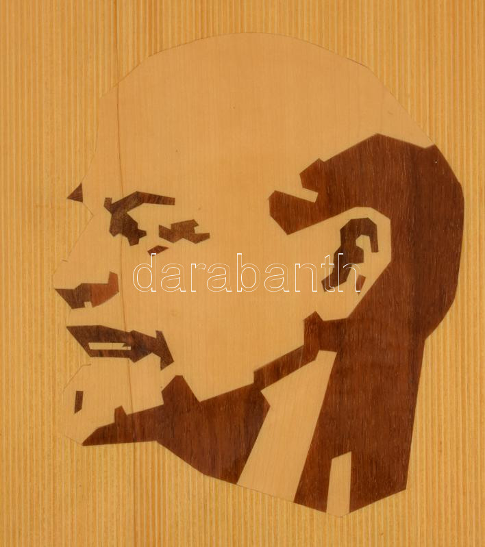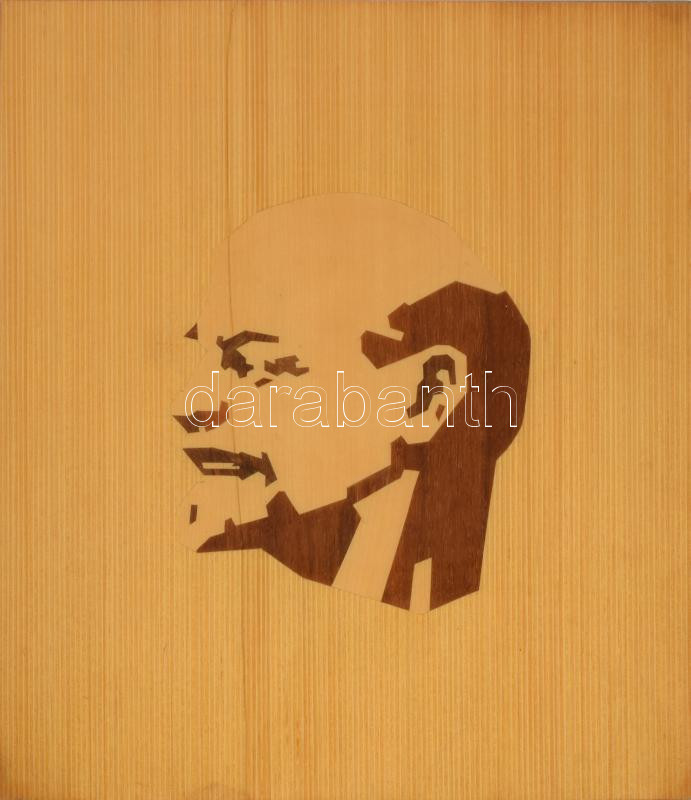 Lenint ábrázoló intarzia kép, 42x36 cm