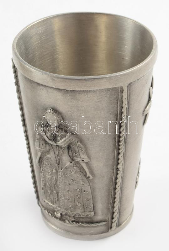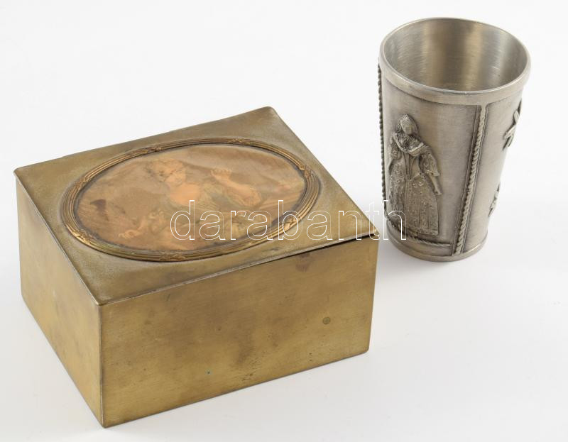 Régi díszdoboz és pohár, h: 10 cm alatt