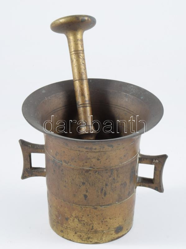 Réz mozsár, törővel d: 12 cm, m:11 cm