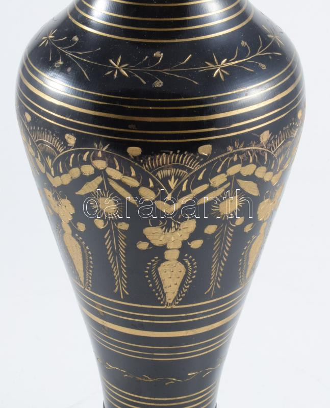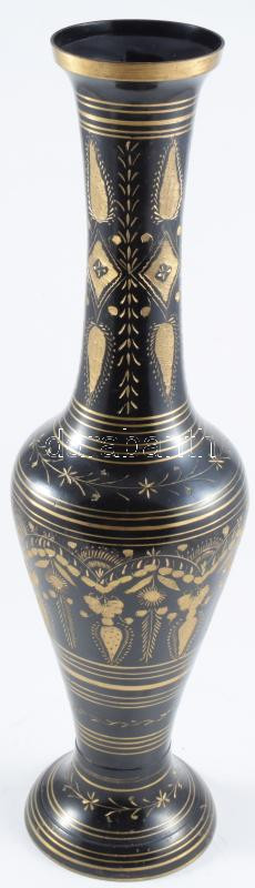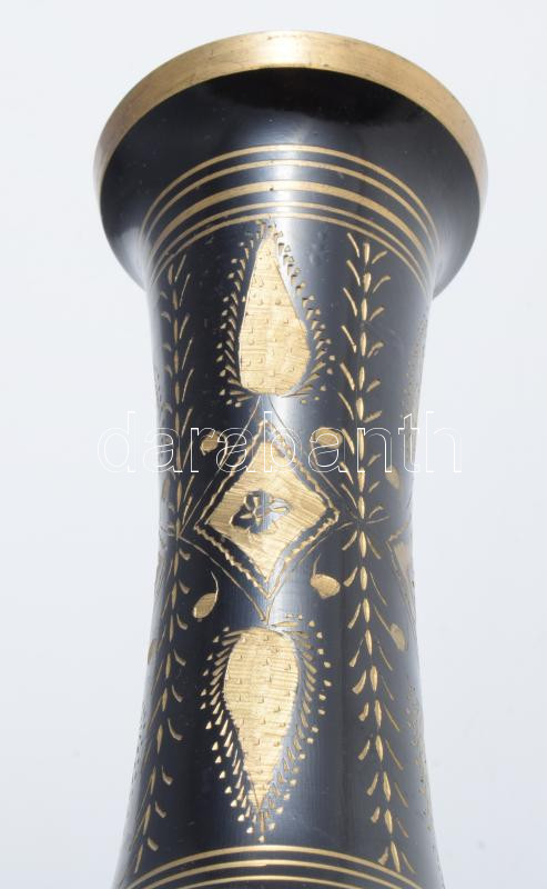 Réz váza, fekete festett karcolt mintával. 41 cm