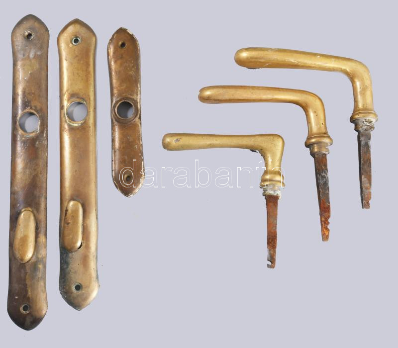 Sokdarabos bronz kilincs és ajtócímke tétel.