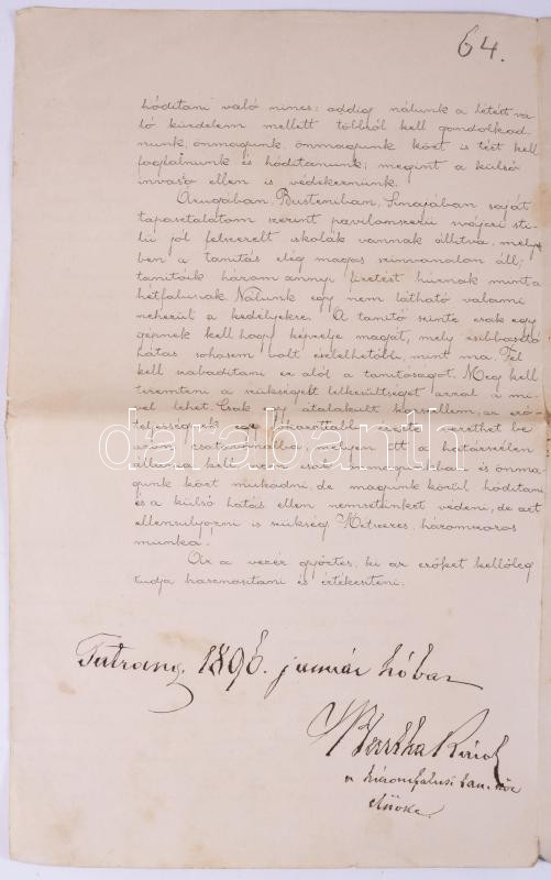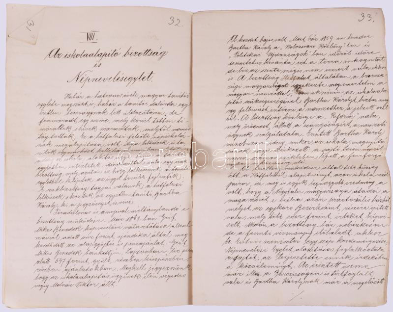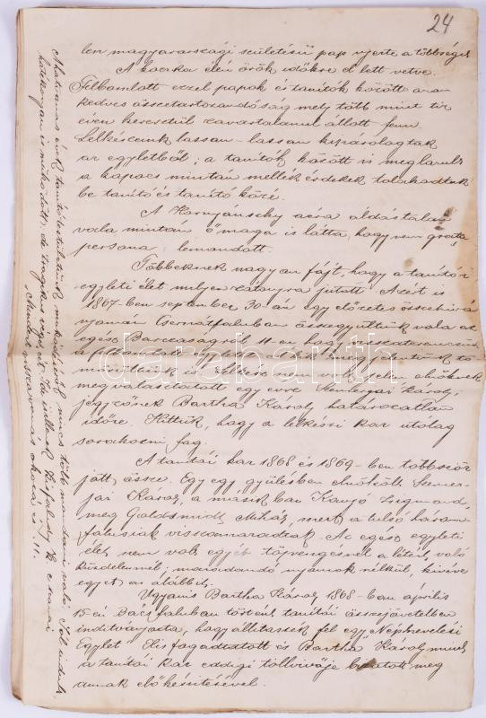 1890 Bartha Károly ( Tatrang (Erdély, RO, Tarlungeni iskolaigazgató munkája): Csángókról és barczasági magyarságról szóló két kézirat összesen 64 p.
