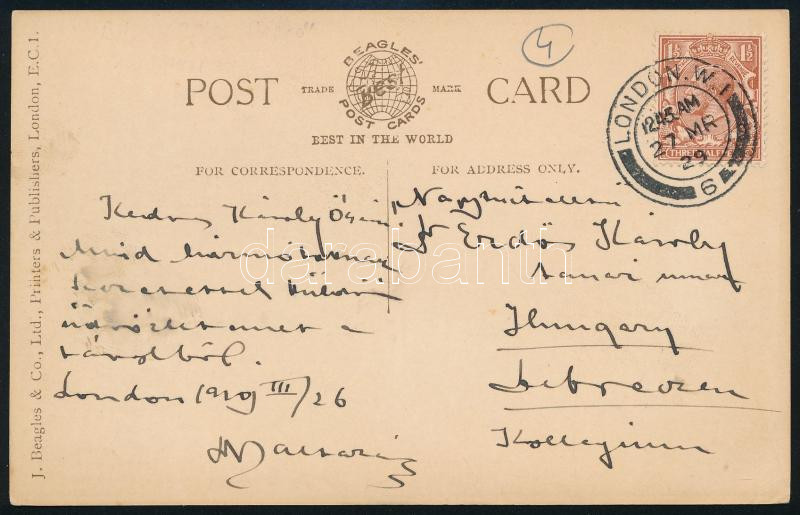 Baltazár Dezső (1871-1936) református püspök autográf levele dr. Erdős Károly tanárnak