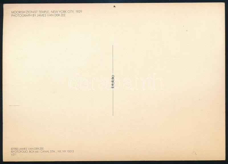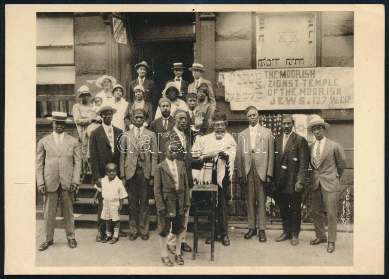 "The Moorish Zionist Temple of the Moorish Jews", afroamerikai zsidók temploma New Yorkban 1929-ben, James Van Der Zee fényképe után készült modern képeslap, 11x15 cm