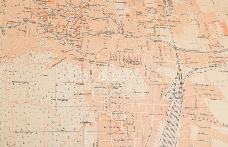 1928 Miskolc thjf. város térképe. Tervezték: Szűcs Sándor és Dr. Vigyázó János, készítette: Tóvári János. 1 : 10.000. Bp., Turistaság és Alpinizmus kiadása (M. kir. állami ny.), jó állapotban 73x45 cm