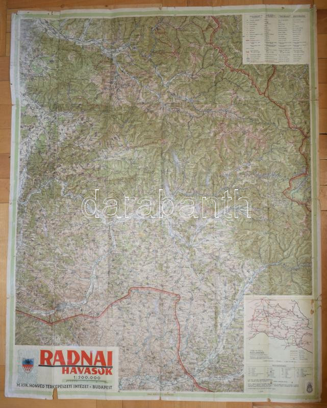 1941 Radnai-havasok térképe, 1:200 000, kiadja: M. Kir. Honvéd Térképészeti Intézet, szakadásokkal, 98×78 cm