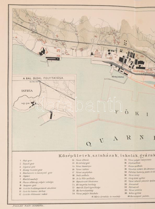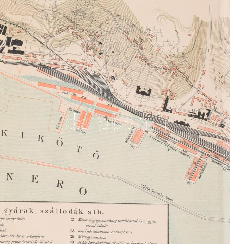 cca 1900 Fiume és kikötője, a Pallas Nagy Lexikona térkép-melléklete, 1 : 11.520, kis lapszéli szakadásokkal, 23x42 cm
