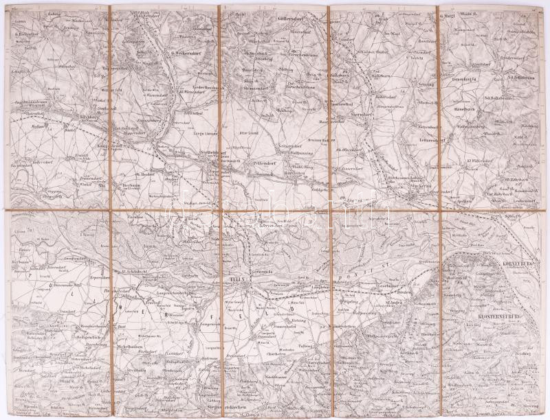 cca 1900 Tulln an der Donau, Korneuburg, Klosterneuburg környéke (Ausztria), katonai térkép, körbevágva, vászonra kasírozva, 37,5x51 cm