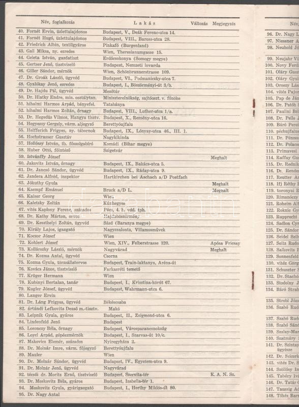 A volt cs. kir. 34. (19) tábori ágyús ezred tényleges, tartalékos és népfelkelő tisztjeinek név- és lakjegyzéke. Tűzött papírkötés, kissé foltos borítóval, hajtásnyommal, 4 p.