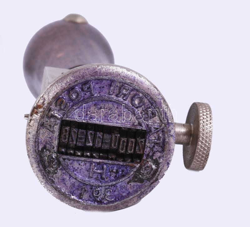 cca 1960/70 Tábori posta bélyegző, fa nyéllel, h: 13 cm