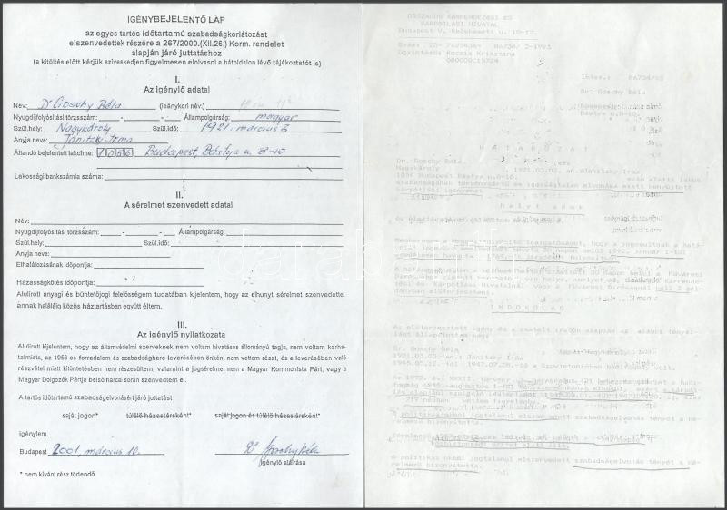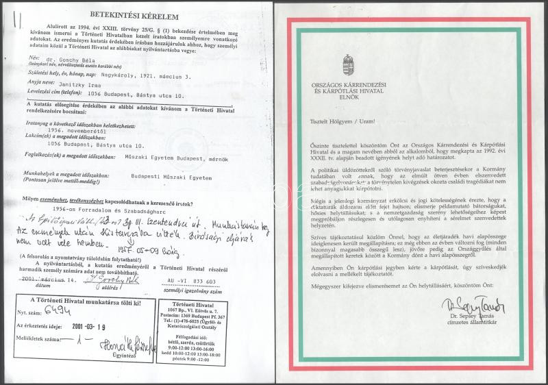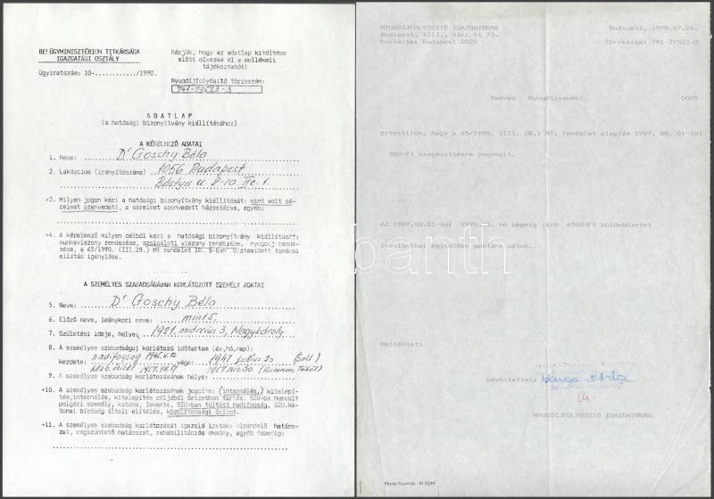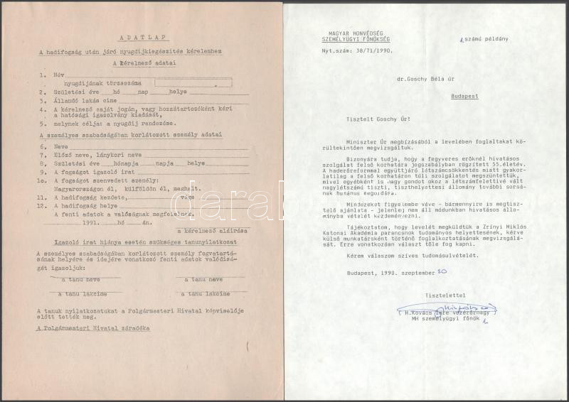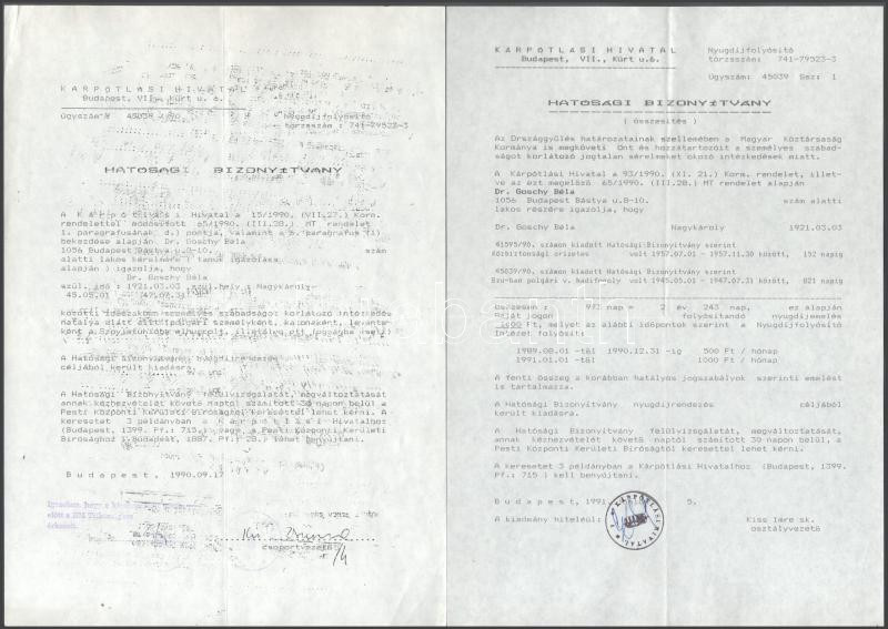 cca 1990-2001 Egykori tiszt kárpótlási iratai