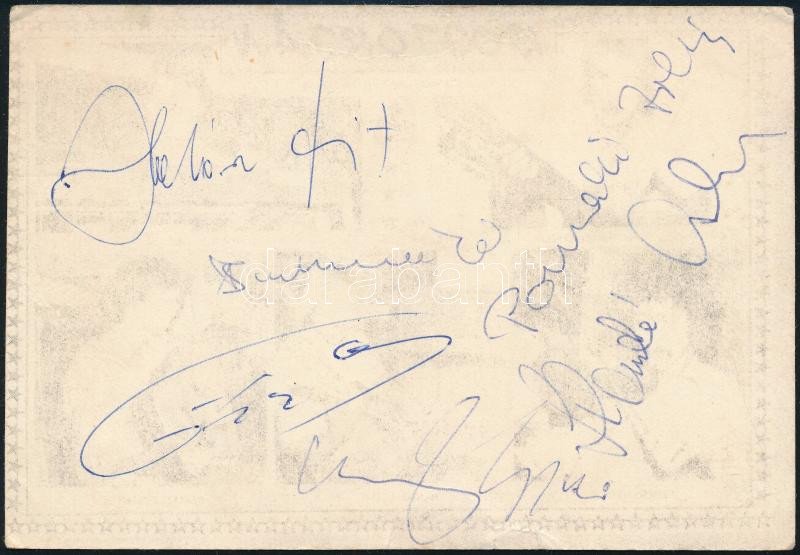 Bojtorján zenekar aláírt kép, közte Halász Judit aláírása is