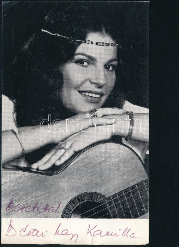 Dévai Nagy Kamilla (1950-) Liszt Ferenc-díjas énekes aláírása az őt ábrázoló képen