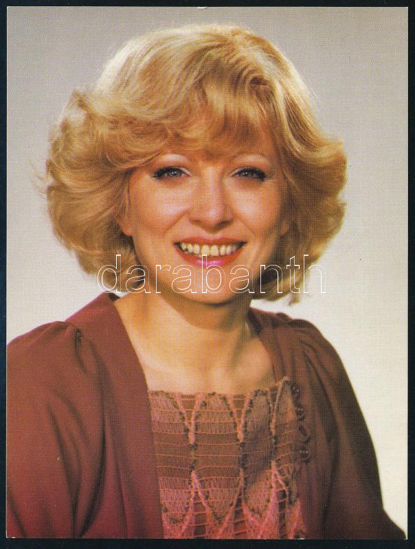 Kudlik Júlia (1945-) újságíró, televíziós műsorvezető, bemondó aláírása képeslapon