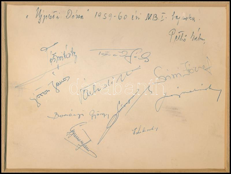 Újpesti Dózsa (UTI) 1959-1960. évi NB. I. bajnokcsapa fotója, aláíráso...