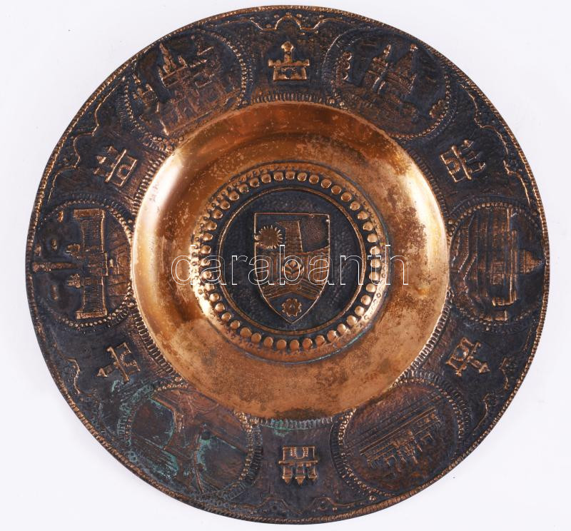 Budapest látképes fali bronz tál, látképekkel. 18 cm
