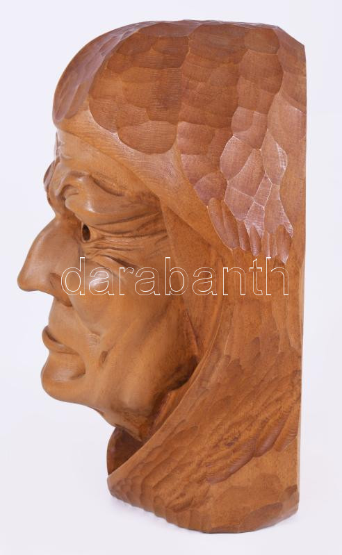 Férfi fej. Faragott fa szobor, m: 19,5 cm