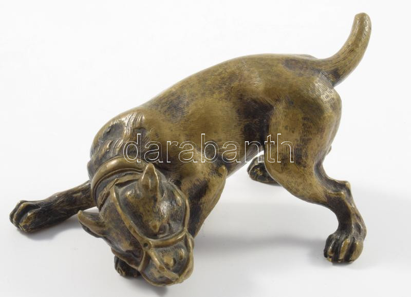 Harci kutya bronz szobra, részletgazdag kidolgozású, 11x5,5 cm
