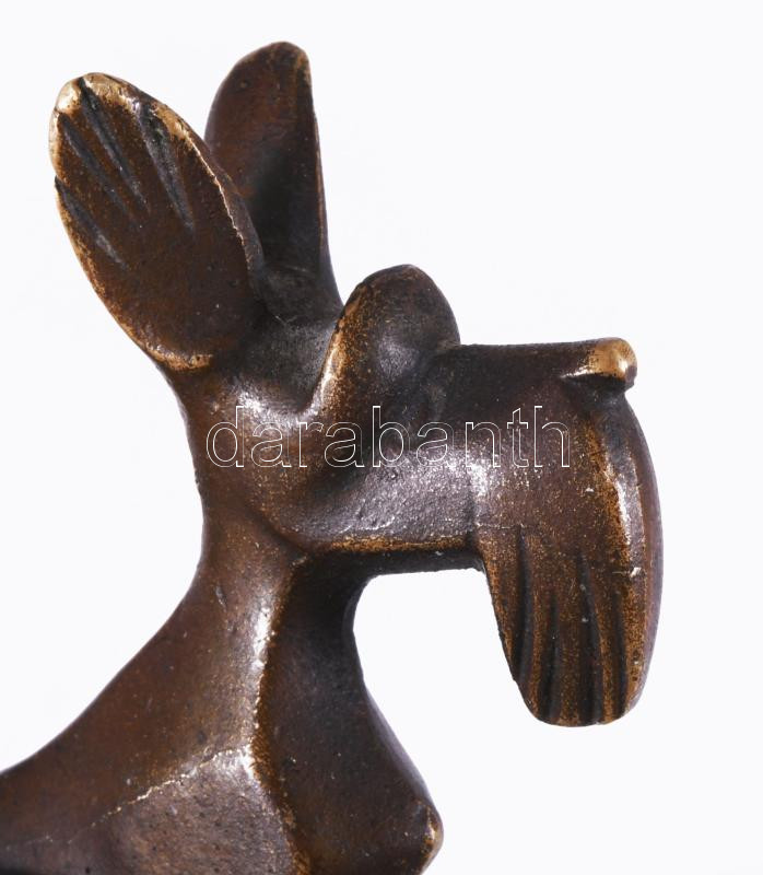 Kutya figura, bronz, alján szereléshez menettel és kiálló lábbal. 6 cm