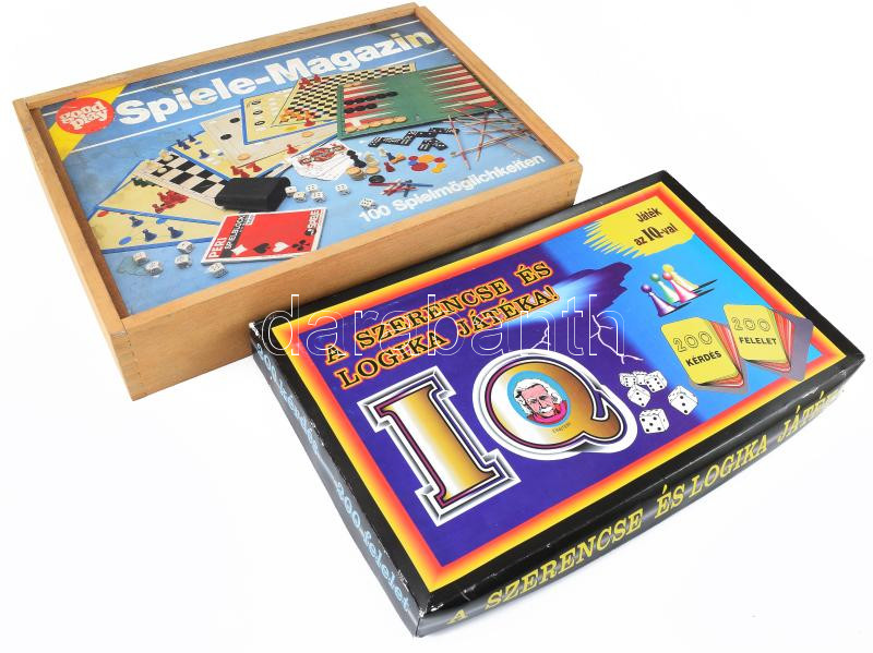 2 darab régi társasjáték, egyik fadobozos, 1-1 hiánnyal.