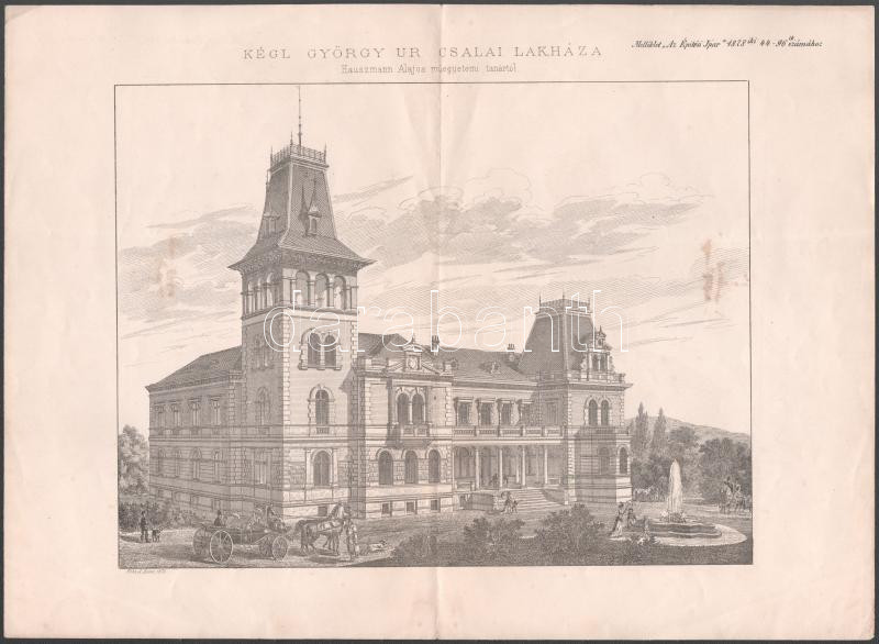 1878 A Kégl-kastély fametszetű ábrázolása Kégl György földbirtokos, országgyűlési képviselő 1878-ban Csalapusztán építtette fel Hauszmann Alajos tervei alapján neoreneszánsz stílusban. Lapméret 39x28 cm