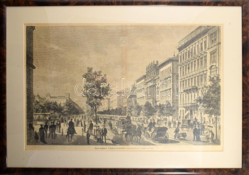 [Bécsi Ring látképe] Wiener Ringstrassen. Rotációs fametszet. 51x33 cm Üvegezett keretben.