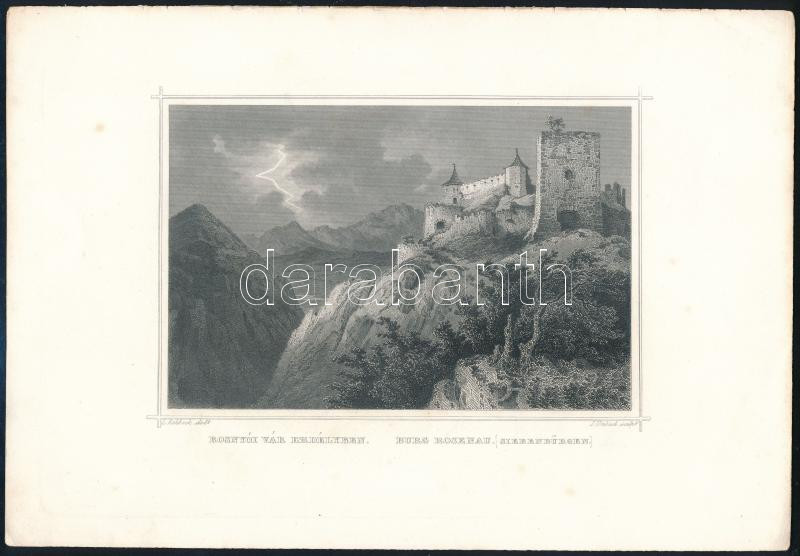 Rozsnyói vár, Erdély. Ludwig Rohbock (1824-1893) német grafikus részletgazdag acélmetszete a "Magyarország és Erdély eredeti képekben" című illusztrált topográfiai műből.