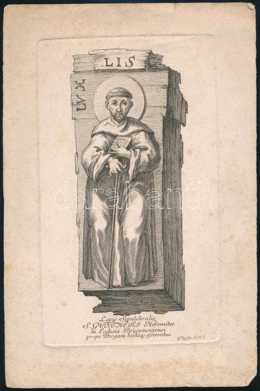 Szent Günter remete rézmetszetű képe. ca 1750 11x20 cm