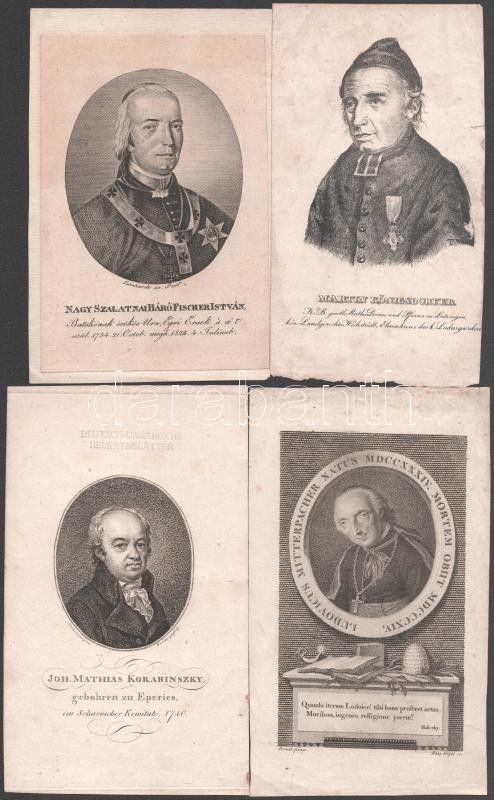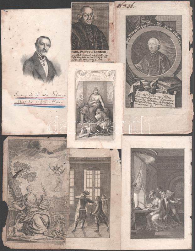 ca 1600-1800 14 db portré és egyéb metszet: rézmetszet és litográfia. Korabinszky, Mitterpacher, Königsdorfer, Pálffy Pál, Palma, báró Fischer István, stb benne két rajz, 16x23 cm-ig