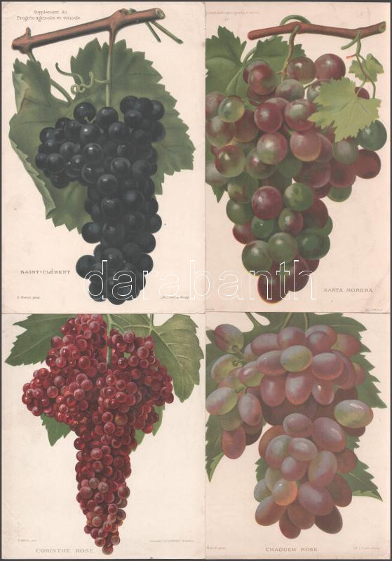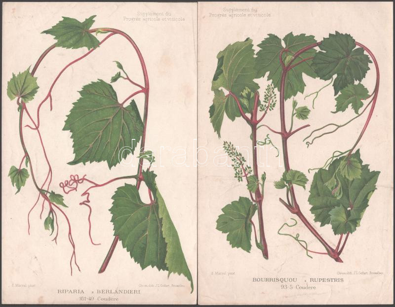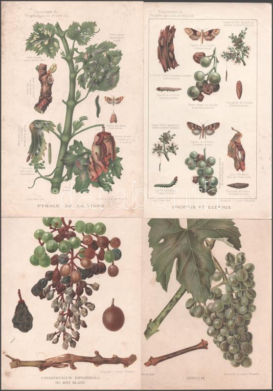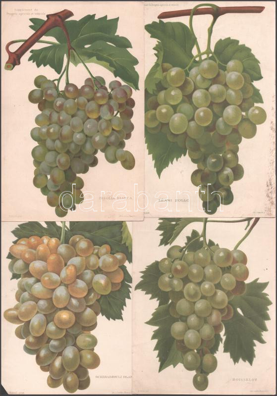ca 1890 31 db szőlőfajtákat, szőlőleveleket bemutató litográfia 16x25 cm