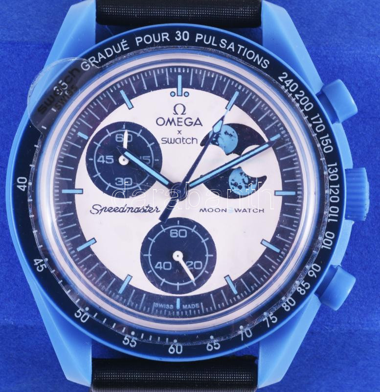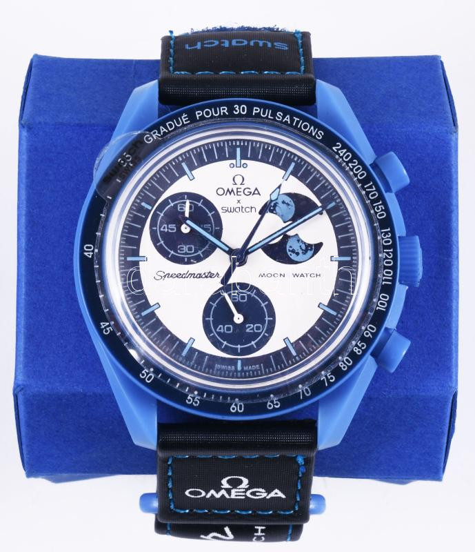 Omega X Swatch - Moonswatch - Mission to The super Blue Moon férfi karóra. Működik, leírással, díszdobozban.