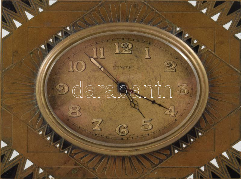 Zenith szecessziós zománcmintás asztali óra, bronz, nem működik, 12x8 cm