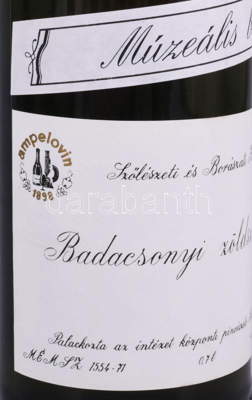 1967 Badacsonyi zöldszilváni, Bormúzeum, bontatlan palack muzeális fehérbor, 0,7l