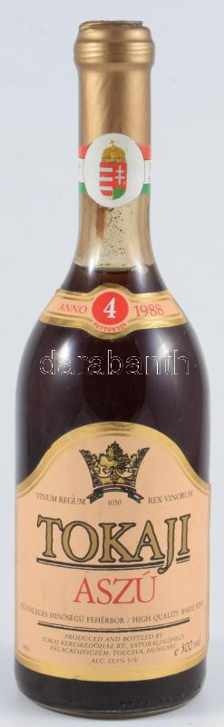 1988 Tokaji aszú 4 puttonyos bontatlan palack, 0,5l Tokaj Kereskedőház.