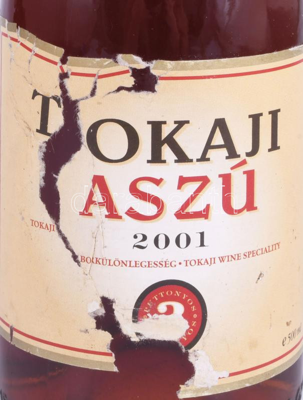 2001 Tokaji aszú, 3 puttonyos, bontatlan palack, sérült címkével, 0,5 l