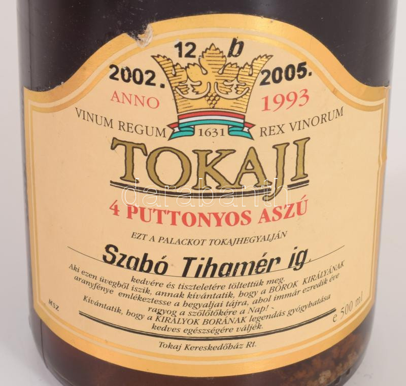 2005 Tokaji aszú, 4 puttonyos, Tokaj Kereskedőház, 0,5l, bontatlan.
