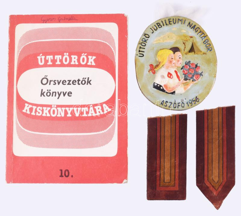 1956 Úttörő Jubileumi Nagytábor Aszófő mázas kerámia plakett. 12 cm + Úttörők Kiskönyvtára - Örsvezetők könyve