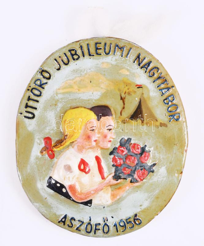 1956 Úttörő Jubileumi Nagytábor Aszófő mázas kerámia plakett. 12 cm + ...