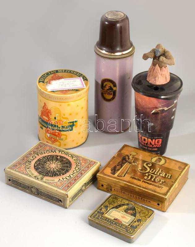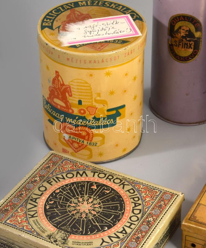 Doboznyi vegyes reklám tétel, zömmel dobozok, közte Beliczay mézeskalács, Orion kulacs, Princesas szivarka, stb.