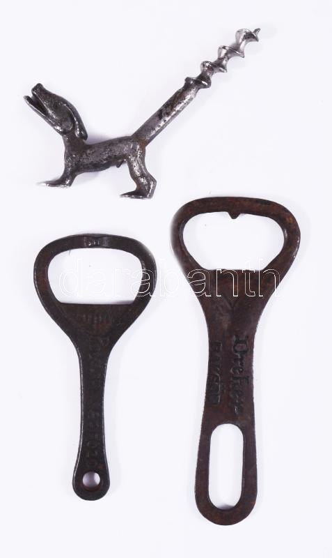 ca 1930 2 db jelzett sörnyitó: Dreher, Polgári Sörfőzde 7-9 cm + 1 dugóhúzó