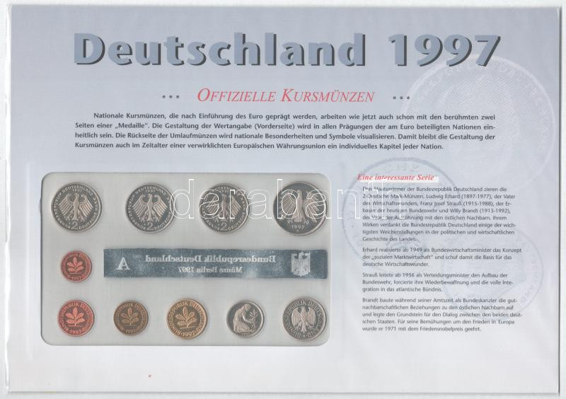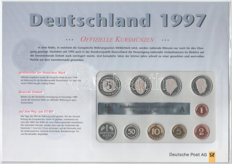 Németország 1997A 1pf-5M "Deutsche Post" hivatalos forgalmi sor, bélyegekkel, karton dísztokban T:PP
