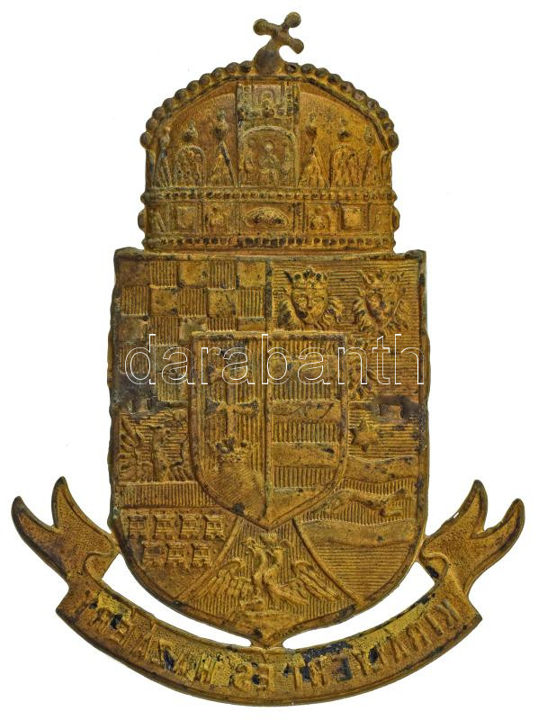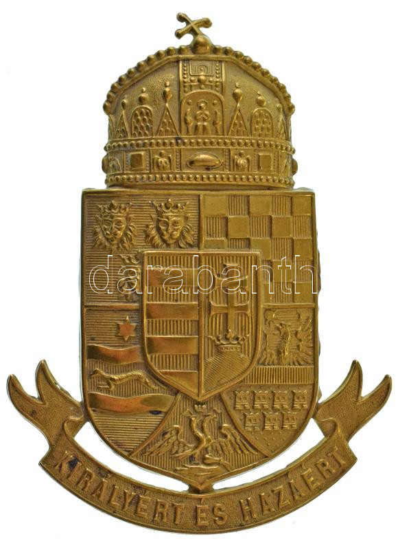 1900-1910 k. "Királyért és Hazáért" magyar királyi csendőr sapkajelvény (96x71mm) T:AU pánt hiányzik