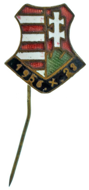 DN 56-os forradalom Kossuth-címeres, dátumos (1956.X.23) zománcozott jelvénye (14x15mm) T:AU